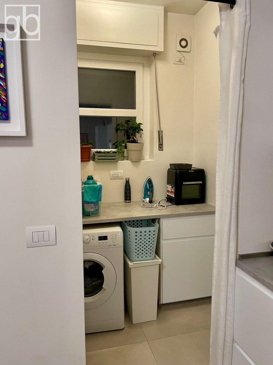 La casa è composta da ingresso, ampio soggiorno con cucina a vista, lavanderia, camera da letto, due balconi e cantina. L'appartamento si presenta completamente ristrutturato e arredato, la cucina è completa di tutti gli elettrodomestici (forno, cappa, frigorifero e lavastoviglie).