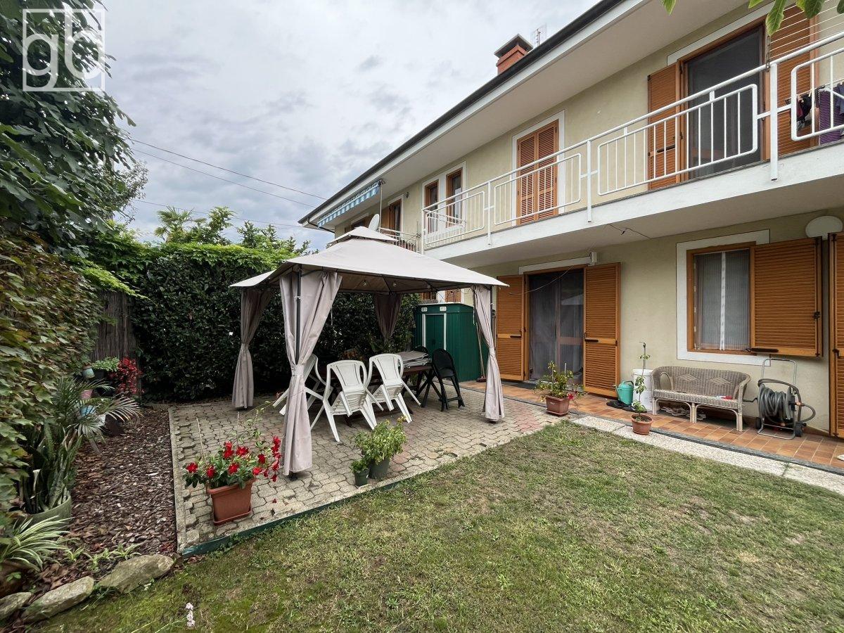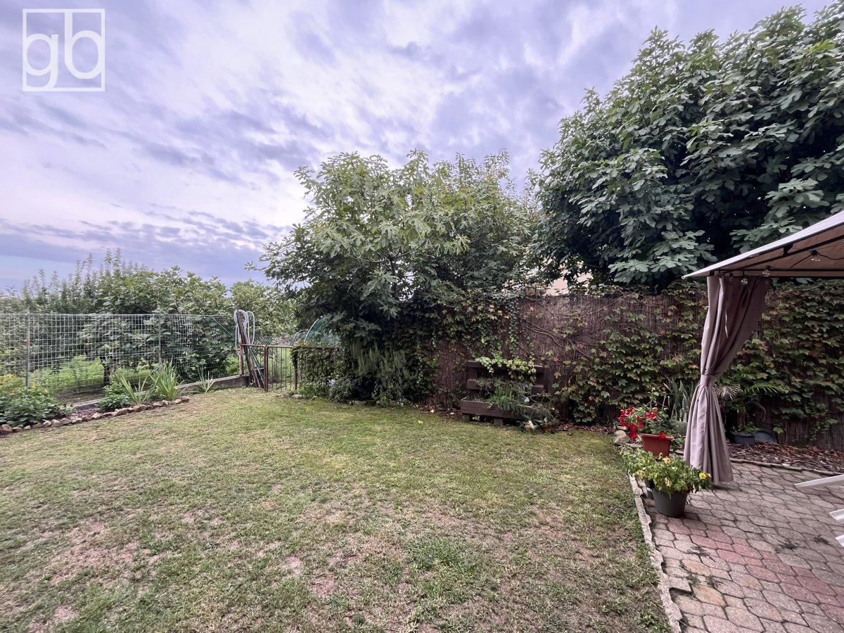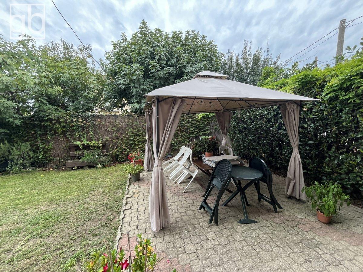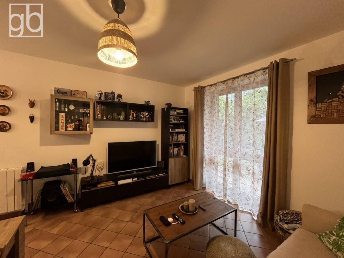 L'appartamento presenta soggirono, cucinotto con un piccolo tavolino rialzato, una camera da letto matrimoniale e un bango finestrato con vasca. Dal salotto e dalla camera da letto si accede direttamente al giardino, uun comodo spazio esterno, con una parte in autobloccanti ottima per posizionare un gazebo per pranzi e cene all'aperto. Viene consegnato parzialmente arredato.