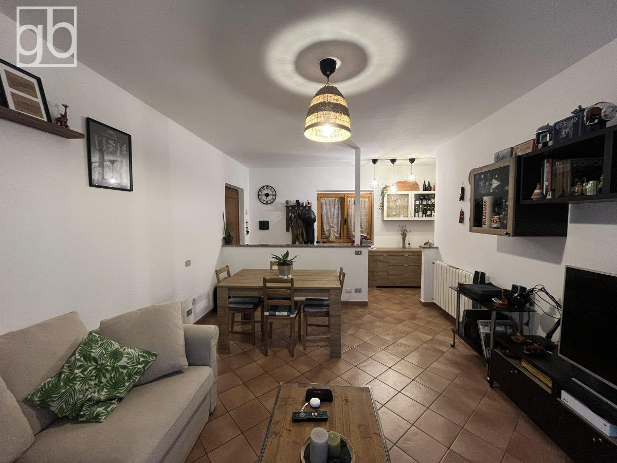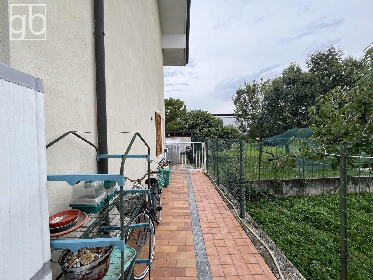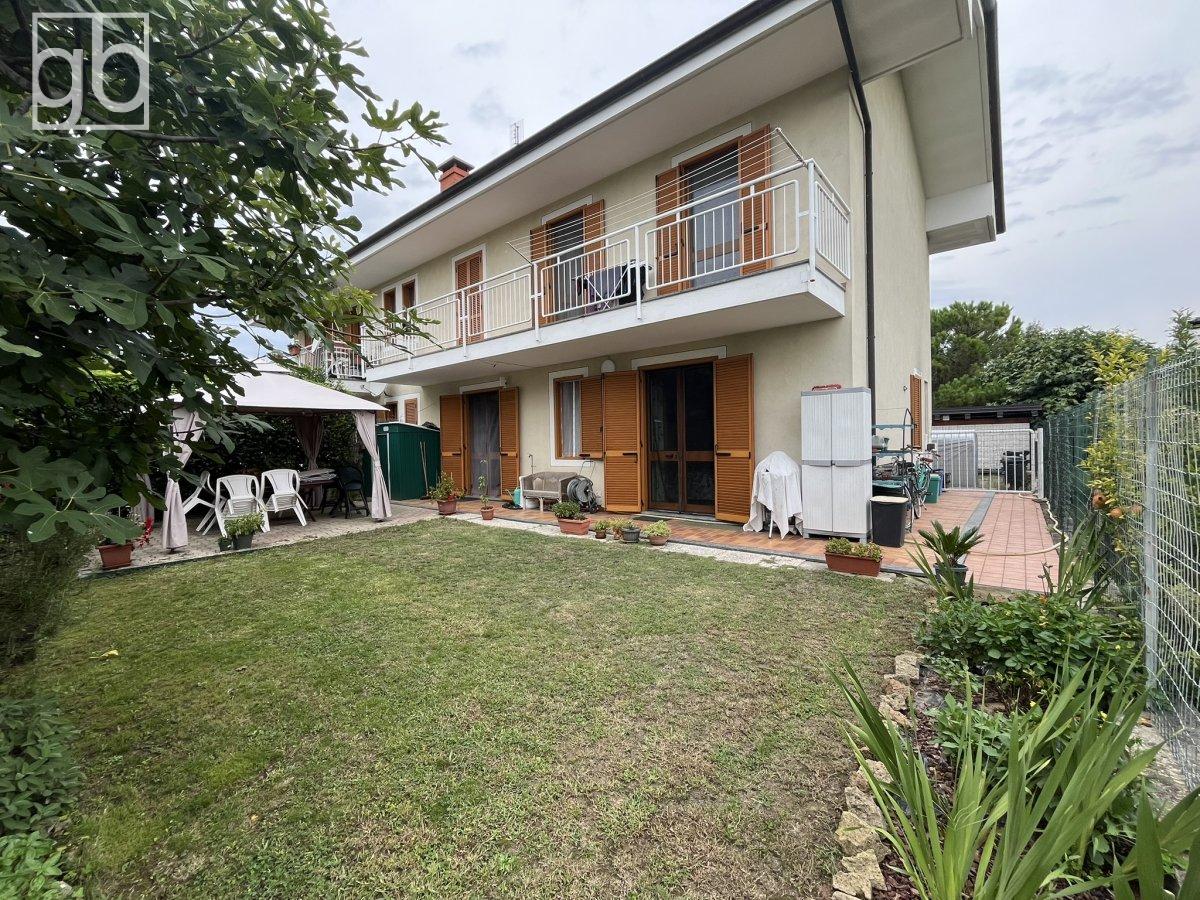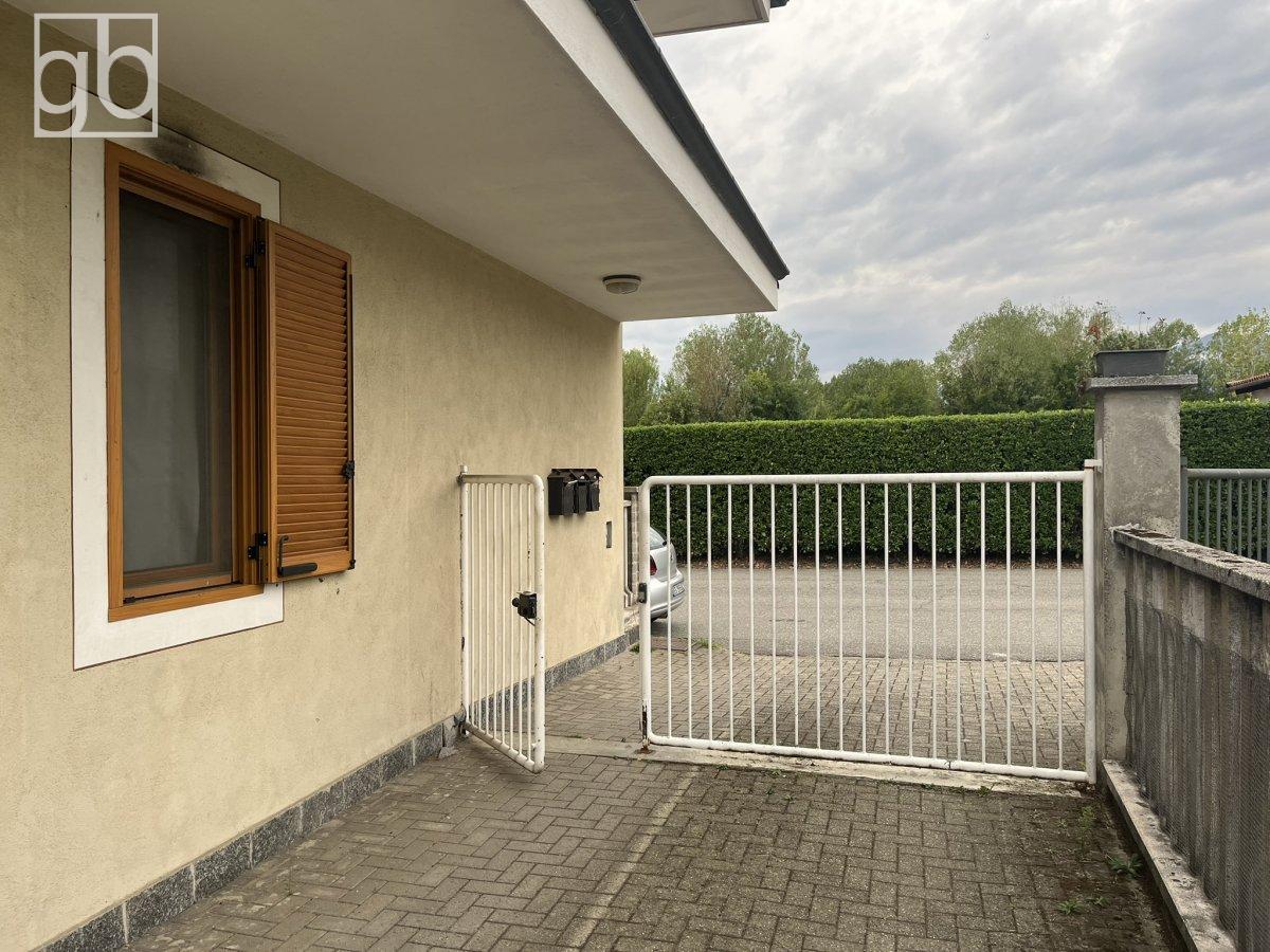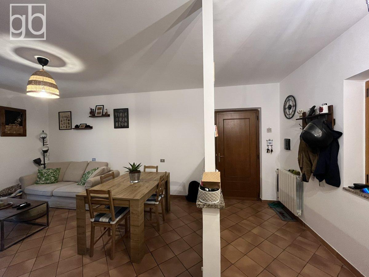 L'appartamento presenta soggirono, cucinotto con un piccolo tavolino rialzato, una camera da letto matrimoniale e un bango finestrato con vasca. Dal salotto e dalla camera da letto si accede direttamente al giardino, uun comodo spazio esterno, con una parte in autobloccanti ottima per posizionare un gazebo per pranzi e cene all'aperto. Viene consegnato parzialmente arredato.